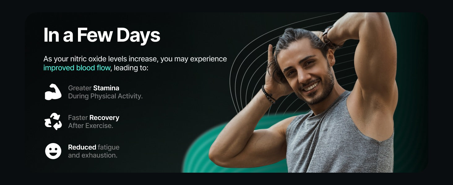 Nitric Oxide Flow enhances athletic performance by increasing the body’s nitric oxide levels, which helps dilate blood vessels and improve blood flow. This allows for more efficient delivery of oxygen and nutrients to muscles and other tissues during exercise. Studies have shown that increasing nitric oxide levels can improve endurance and strength, particularly during high-intensity or prolonged physical activity.